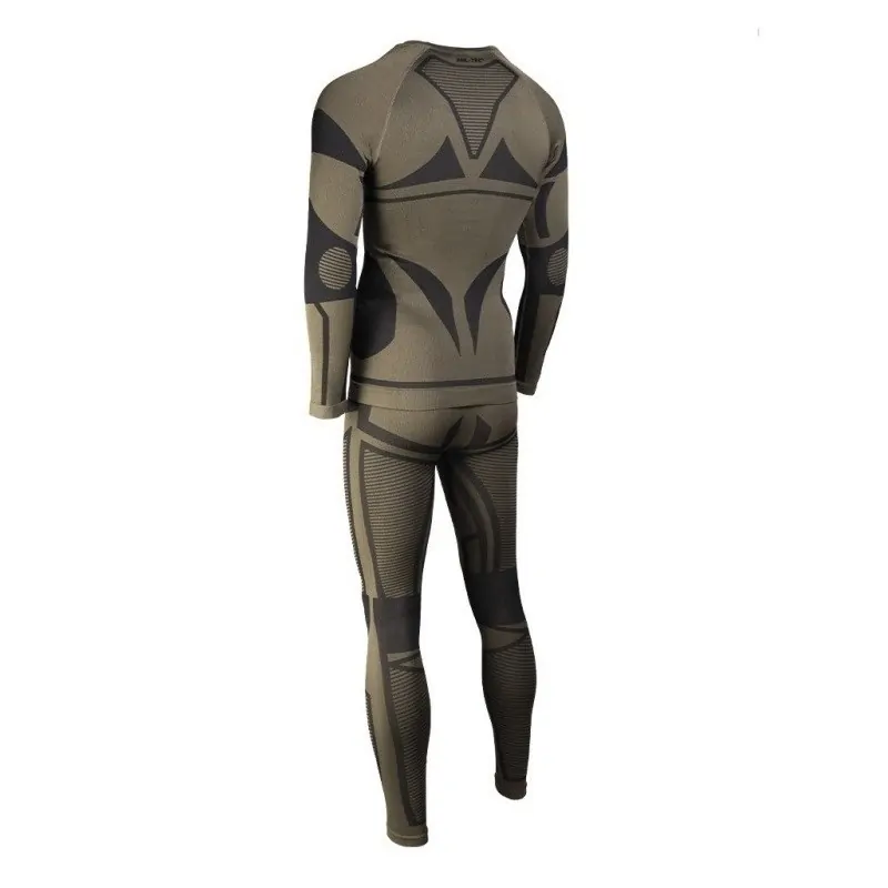 Σετ ισοθερμικό της εταιρείας Mil-Tec, σε δύο χρώματα χακί και μαύρο, με μοντέρνο σχεδιασμό για ευκολία στην κίνηση και τεχνική πλέξης που υποστηρίζει τους μύες. Η εταιρεία Mil-Tec προτείνει την χρήση του σε όσους ασχολούνται με δραστηριότητες στη φύση όπως πεζοπορία, τρέξιμο, ποδηλασία κλπ.