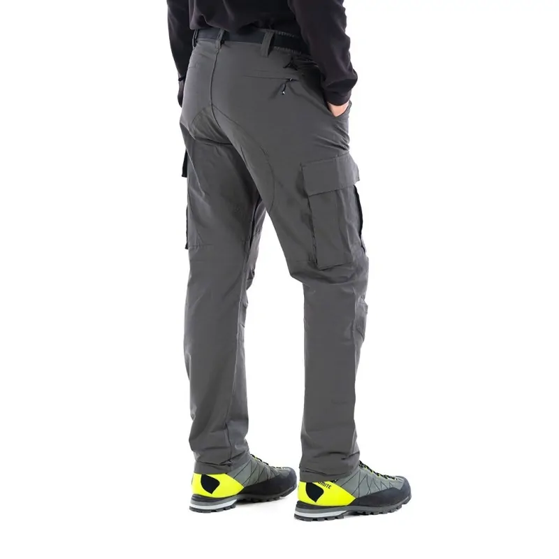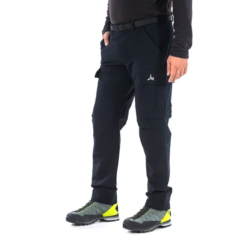 Κατασκευασμένο από strech ύφασμα ελαφρύ και υδρόφοβο τεχνολογίας Rip-stop, ελαστικό και διαπνέον με ενίσχυση στο καβάλο για μεγαλύτερη αντοχή. Διαθέτει δύο τσέπες στον μηρό που ασφαλίζουν με velcro δύο το πίσω μέρος που ασφαλίζουν με φερμουάρ και δύο κανονικές . Συμπεριλαμβάνεται η ζώνη όπως φαίνεται στην φωτογραφία.