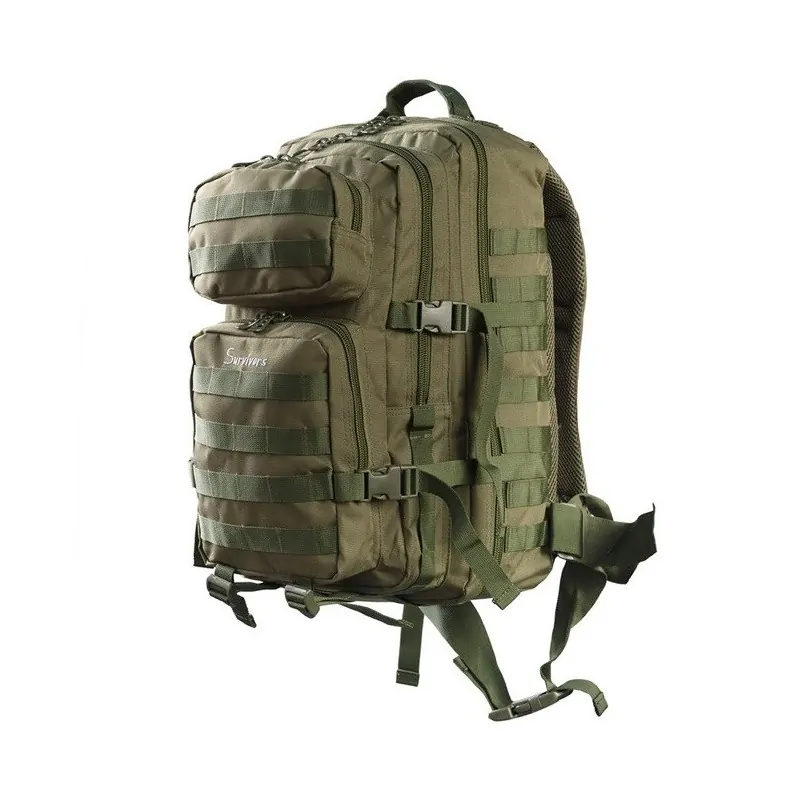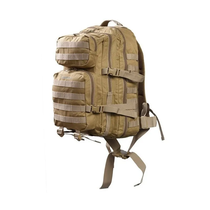 Σακίδιο πλάτης της εταιρείας Survivors με σύστημα Molle χωρητικότητας 45λτ και πλαϊνούς ιμάντες που ρυθμίζουν τον όγκο σε περιπτώσεις που είναι άδειο. Διαθέτει ανατομική πλάτη κατασκευασμένη από EVA foam 550g/qm, δένει στην μέση με ιμάντα κλιπ και φέρει ιμάντες μεταφοράς φάρδους 7cm για άνεση στην μεταφορά.