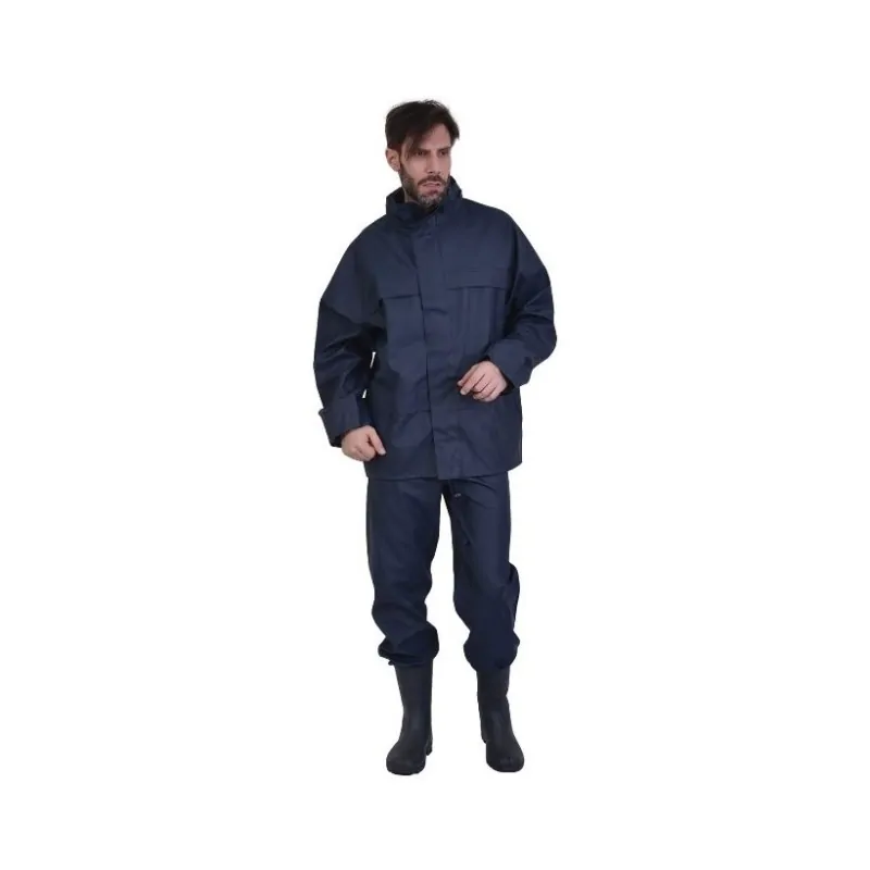 Εξαιρετικά ποιοτικό αδιάβροχο σετ παντελόνι/σακάκι σε μπλε χρώμα της εταιρείας Ergosafety για να σας προστατεύει από την βροχή και τον αέρα. Πολύ εύκαμπτο και ελαφρύ υλικό για πλήρη ελευθερία κινήσεων..