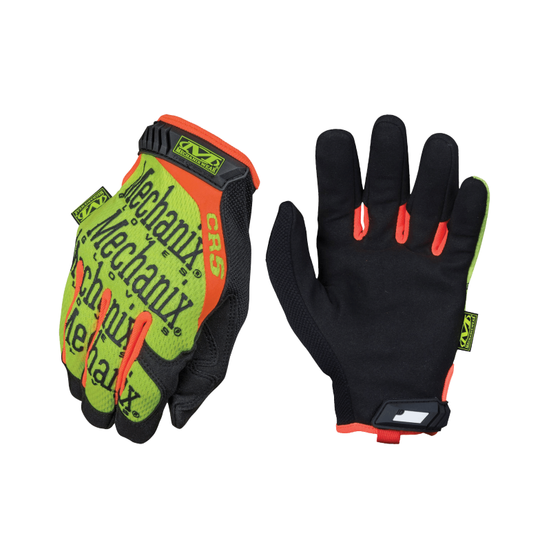 Γάντια CR5 Hi-Viz The Original της εταιρείας Mechanix σχεδιασμένα για επαγγελματίες που εργάζονται σε απαιτητικά και επικίνδυνα περιβάλλοντα. Κατασκευασμένα με εσωτερική επένδυση Armotex CUT η οποία προσφέρει πιστοποιημένη προστασία επιπέδου CE5 στην παλάμη και τα δάχτυλα, ενώ το φωσφορίζον TrekDry ύφασμα διατηρεί τα χέρια δροσερά και άνετα σε ζεστές συνθήκες.
