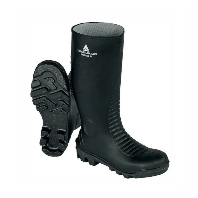 Γαλότσες εργασίας της εταιρείας Delta Plus μοντέλο Bronze2 S5 σε μαύρο χρώμα. Κατάλληλες για αγροτικές, κτηνοτροφικές, οικοδομικές εργασίες, αλλά και για τον κήπο και το ψάρεμα.