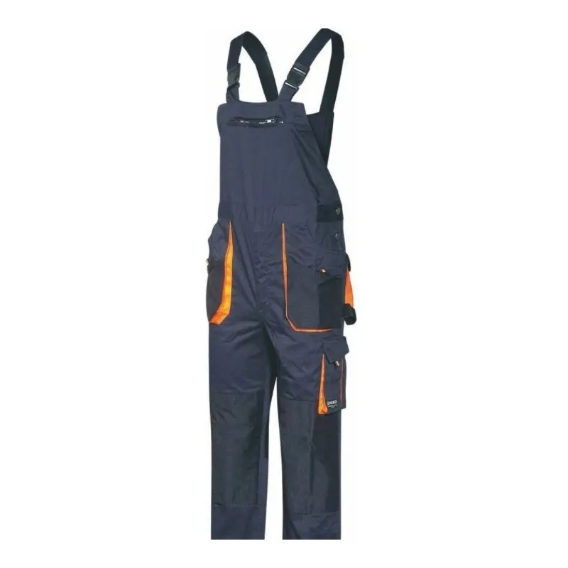 Φόρμα εργασίας με τιράντα της εταιρείας Fageo σε χρώμα σκούρο μπλε με πορτοκαλι λεπτομέρειες. Αποτελεί ιδανική λύση είτε για ερασιτεχνικές εργασίες στο σπίτι ή τον κήπο σας αλλά και για βιομηχανικούς χώρους, βιοτεχνίες και κατασκευές. Ενισχυμένη με επένδυση Oxford για μεγαλύτερη αντοχή.