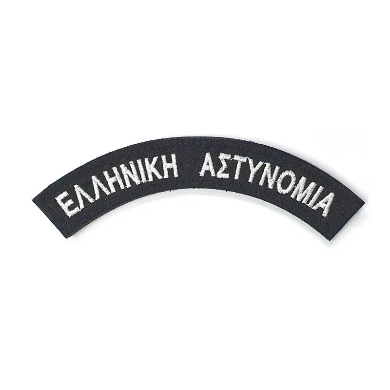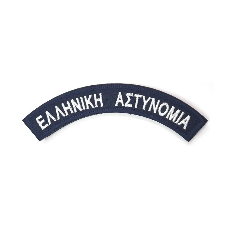 Ημικύκλιο σήμα ελληνικής αστυνομίας που τοποθετείται στην υπηρεσιακή στολή. Με την παραγγελία του προϊόντος σας αποστέλλονται δυο ημικύκλια με κέντημα ελληνικής αστυνομίας που διαθέτουν velcro (σχρατς) έτοιμα να τοποθετηθούν επάνω στην στολή.