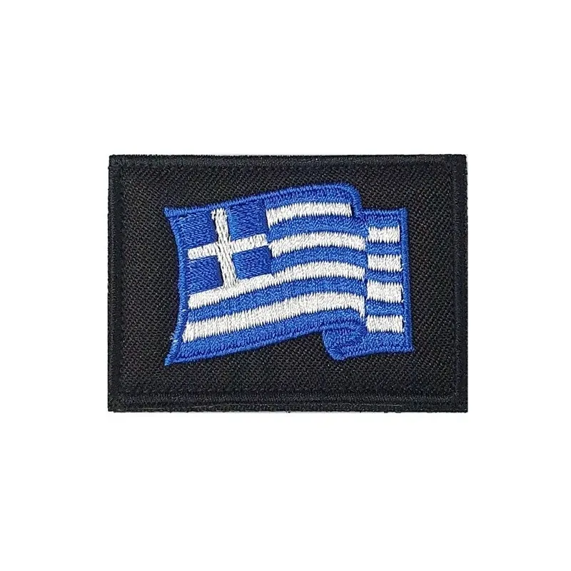 Σήμα Ελληνικής σημαίας κυματιστή σε μαύρο φόντο με velcro που μπορεί να διακοσμίσει όμορφα μια τσάντα, μια μπλούζα, ένα καπέλο ή ακόμα και ένα μπουφάν.
