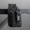 Το μπροστινό κλείσιμο με πόρπη εξασφαλίζει ότι ο ασύρματος παραμένει σταθερός στη θέση του, ενώ τα ρυθμιζόμενα ελαστικά κορδόνια προσθέτουν επιπλέον ασφάλεια. Το πίσω πάνελ είναι συμβατό με MOLLE/PALS, το οποίο επιτρέπει την ενσωμάτωση του σε γιλέκα, plate carriers, σακίδια ή ζώνες μάχης.