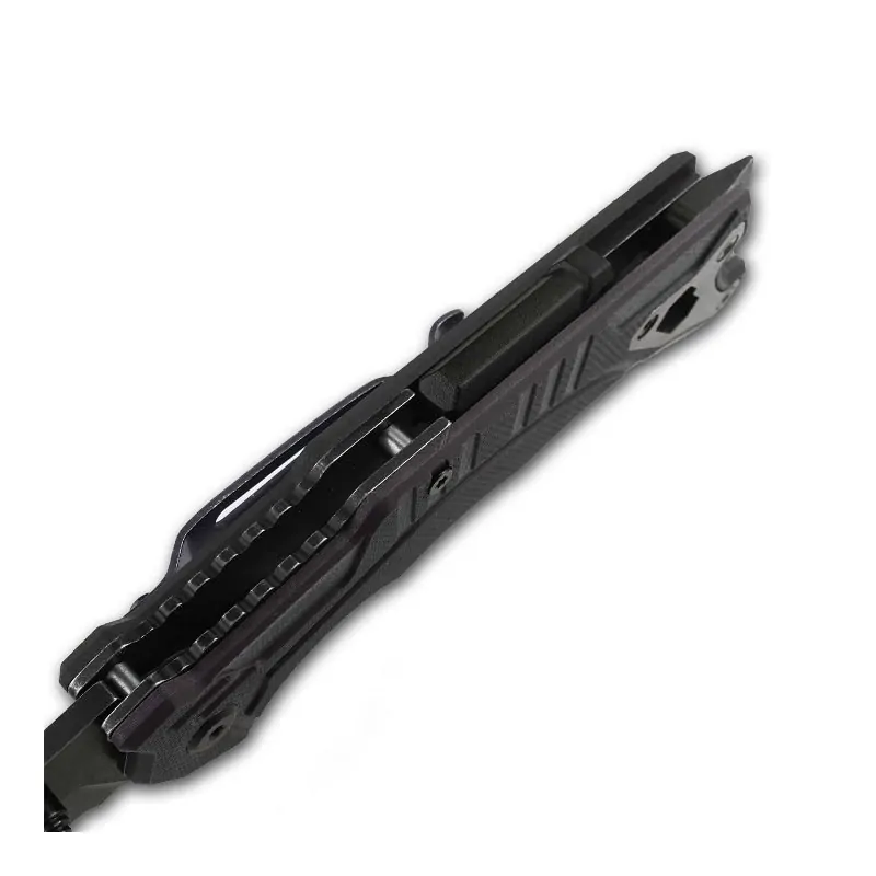 Η λαβή του είναι κατασκευασμένη από αντιολισθητικό G-10 πλαστικό, σχεδιασμένη για ασφαλές κράτημα και με κλιπ ζώνης για να το στερεώνετε στην ζώνη, την τσέπη ή την τσάντα σας.