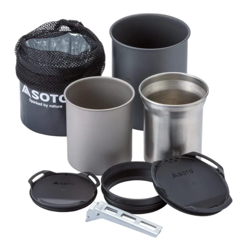 Το φορητό μαγειρικό σετ τιτανίου της Ιαπωνικής εταιρείας Soto Outdoors, παρέχει ένα πλήρες και πρακτικό σύνολο για το μαγείρεμα και την αποθήκευση των τροφίμων σας κατά τις εξορμήσεις σας στη φύση. Με διάφορα μεγέθη και υλικά κατασκευής, αυτό το σετ είναι ελαφρύ, πρακτικό και ευέλικτο, κατάλληλο για χρήση σε ποικίλες συνθήκες και εποχές, όπως για camping σε περιοχές με πολύ ψύχος και πολύ αέρα, ή και camping τους καλοκαιρινούς μήνες.