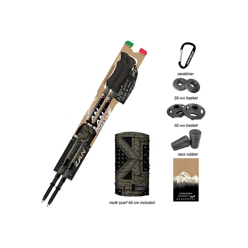 Ζεύγος τηλεσκοπικά μπατόν ορειβασίας από την Fizan σε μαύρο χρώμα, κατάλληλα για επιπλέον στήριξη και αίσθηση ασφάλειας σε δύσβατα σημεία. Τα μέρη από τα οποία αποτελούνται μπαίνουν το ένα μέσα στο άλλο και το μήκος μπορεί να προσαρμοστεί ανάλογα με το ύψος σας αλλά και την κλίση του εδάφους που περπατάτε. Μειώνουν την πίεση που δέχονται τα γόνατα, οι αστράγαλοι και τα πέλματα ειδικά σε κατηφορικό έδαφος.
