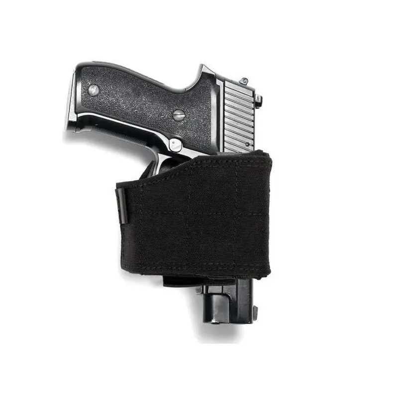 Ρυθμίζεται ανάλογα με το μοντέλο του πιστολιού μέσω velcro που ανοίγει από το πλάι και κλείστι στο σημείο που ακριβώς σας εξυπηρετεί. Η πιστολοθήκη επίσης διαθέτει ασφάλεια για να συγκρατεί και να ασφαλίζει ακόμα καλύτερα το πιστόλι σας το οποίο απελευθερώνεται με απλό πάτημα με τον αντίχειρα.