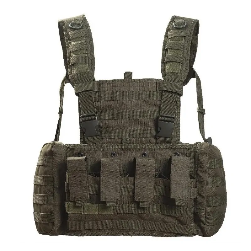 Eλαφρύ γιλέκο μάχης επιχειρησιακό με 4 θήκες για γεμιστήρες G3, M16 κτλ στο μπροστινό μέρος. Μπορεί να χρησιμοποιηθεί ως Chest Rig ή Plate Carrier, σε συνδυασμό με επιχειρησιακό σακίδιο πλάτης (Bergen) ή να ενωθεί πολύ εύκολα με την πλάτη 00753 για την δημιουργία ενός ολοκληρωμένου Plate Carrier.