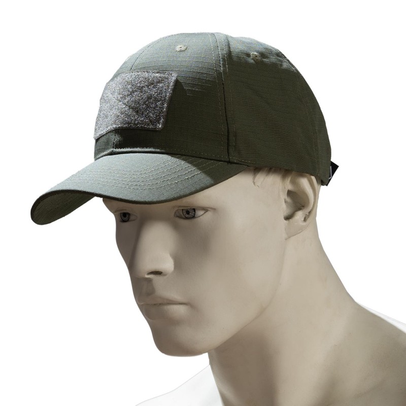 Καπέλο Jockey σε χακί χρωματισμό από την εταιρεία Survivors με velcro στο εμπρόσθιο, επάνω και πίσω τμήμα για τοποθέτηση εθνόσημου, σημαίας , ομάδα αίματος κλπ. Είναι κατασκευασμένο από 65%/35%, Poly/Cotton σε μορφή Rip-Stop. Διαθέτει μικρές οπές για να αερίζεται το κεφάλι. Είναι ένα μέγεθος και ρυθμίζει με velcro που διαθέτει στο πίσω μέρος.