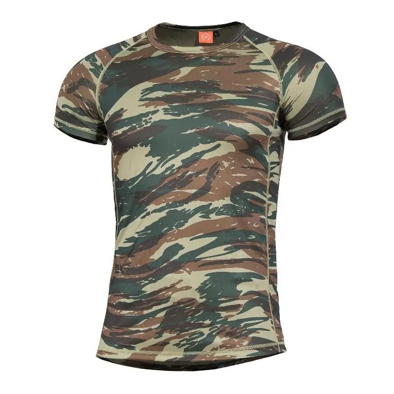 Αντιιδρωτικό μπλουζάκι της εταιρείας Pentagon, μοντέλο Bodyshock σε χρώμα ελληνικής παραλλαγής για να φορεθεί αντί του απλού. Μπορεί να χρησιμοποιηθεί όλη την διάρκεια της ημέρας στην υπηρεσία προσφέροντας άνεση σε συνθήκες όπου επικρατού υψηλές θερμοκρασίες.