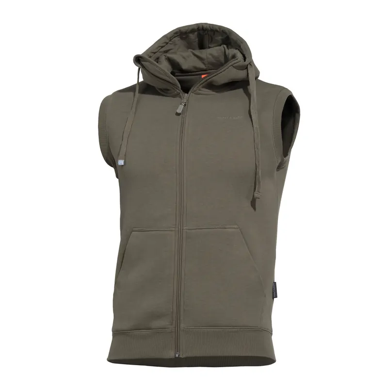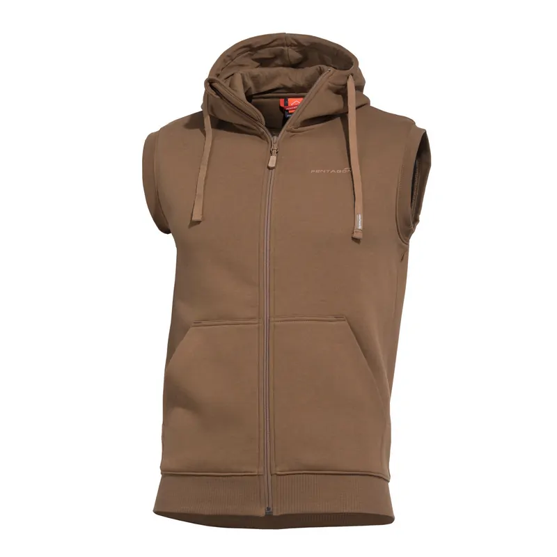 Aμάνικη ζακέτα μοντελό Thespis 2.0 της εταιρείας Pentagon με κουκούλα κατασκευασμένη από ασύγκριτης ποιότητας χοντρό φούτερ σε πέντε διαφορετικούς χρωματισμούς: μαύρο, καφέ, χακί, γκρί και σκούρο κάφε.