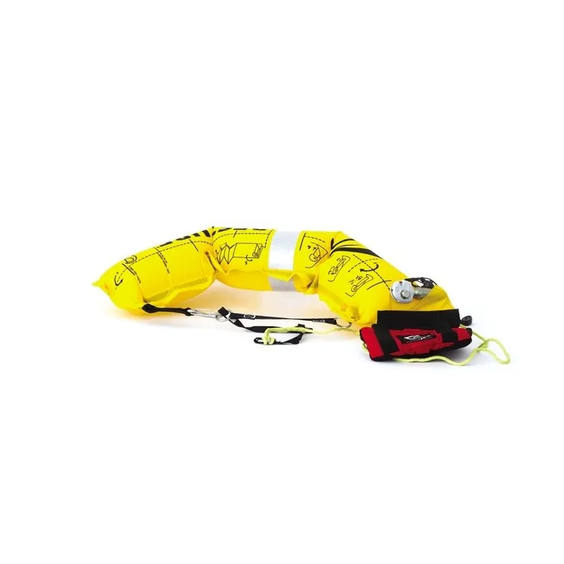 Φορέστε το Restube στην μέση σας ή συνδέστε το στον εξοπλισμό σας. Είναι διπλωμένο σφιχτά στην θήκη του και σχεδόν δεν το νιώθετε. Πανεύκολο στην χρήση καθώς τραβάτε απλά το κορδόνι με απότομη κίνηση και το Restube φουσκώνει μόνο του.