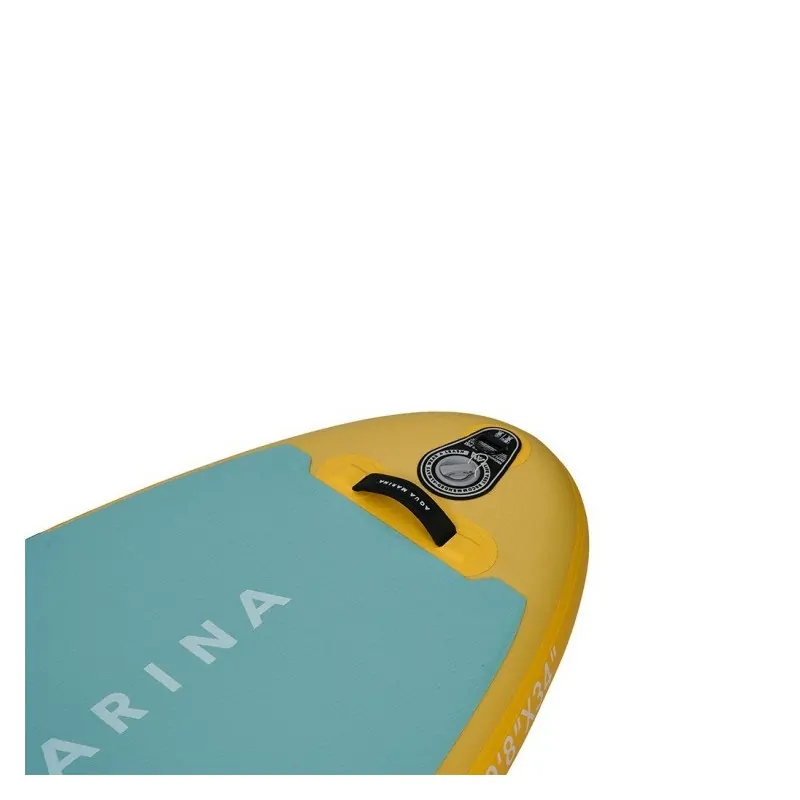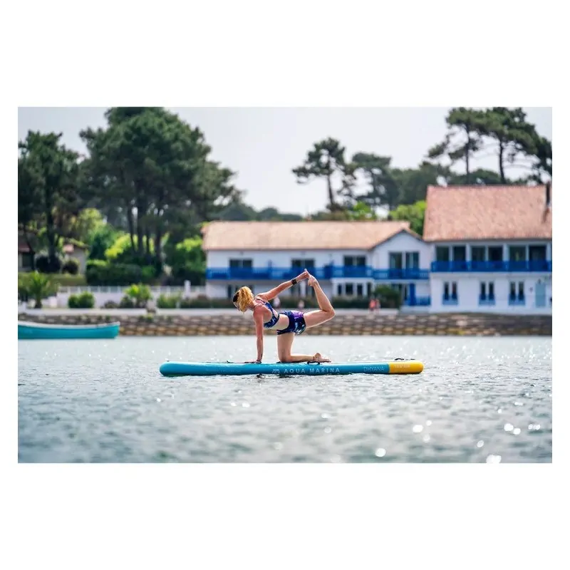 Φουσκωτή σανίδα SUP της εταιρείας Aqua Marina μοντέλο Dhyana 10’8” σε γαλάζιο χρώμα. Ειδικά σχεδιασμένο για yoga, pilates και aqua fitness. Κατασκευασμένη με την αποκλειστική τεχνολογία drop stitch Light μικρού βάρους με μεγάλη ακαμψία και το στυλ και σχήμα All-Around για καλύτερη ολίσθηση.