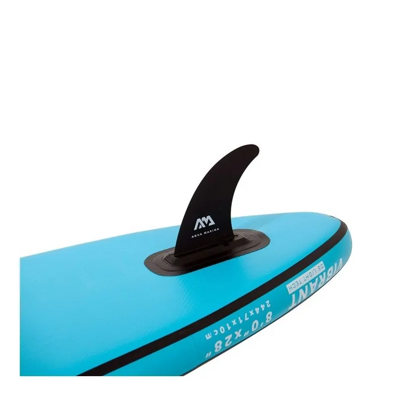 Φουσκωτή σανίδα S.U.P. της εταιρείας AquaMarina μοντέλο Vibrant 8'0" ειδικά σχεδιασμένη για παιδιά και εφήβους που θέλουν ατελείωτες ώρες παιχνίδι στη θάλασσα. Κατασκευασμένη με τεχνολογία drop stitch μικρού βάρους.Διαθέτει αποσπώμενο slide-in πτερύγιο,ανθεκτική χειρολαβή και μεταλλικούς κρίκους με ελαστικό κορδόνι για μεταφορά αντικειμένων. Η επιφάνεια του έχει επένδυση με ανάγλυφο αντιολισθιτικό υλικό για μεγαλύτερη σταθερότητα και άνεση.