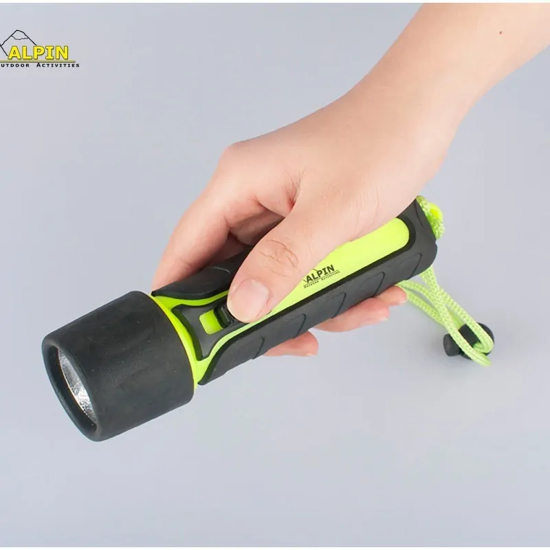 Καταδυτικός φακός της εταιρείας Alpin Outdoor που αποδίδει ένταση φωτός στα 320Lm. Κατάλληλος για βάθος μέχρι 30m, λειτουργεί με τέσσερις μπαταρίες τύπου ΑΑ(περιλαμβάνονται στην συσκευασία) και η δέσμη του φτάνει τα 165 μέτρα.