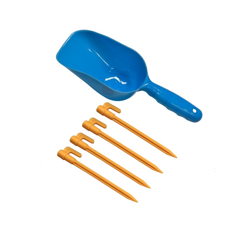 • Περιέχονται 4 πλαστικά πασσαλάκια (για στήσιμο σε σκληρό έδαφος όπως γκαζόν) και φτυαράκι για την άμμο