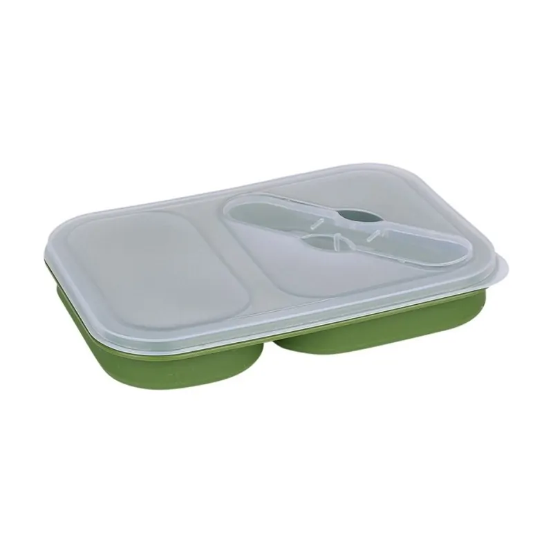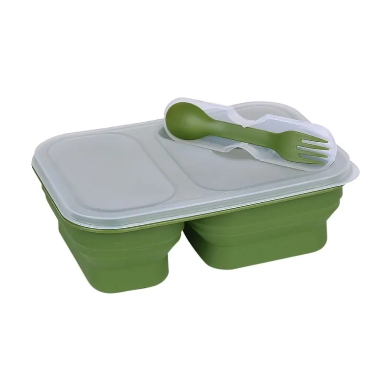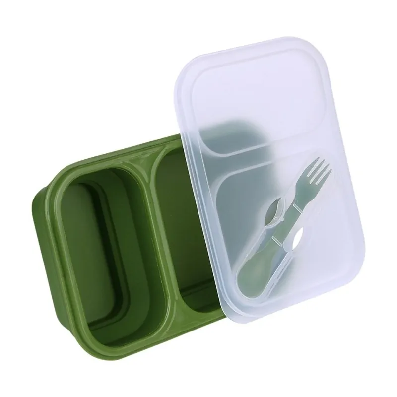 Foldable lunchbox is made of durable silicone. It’s flexible, portable, and easy to clean.