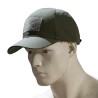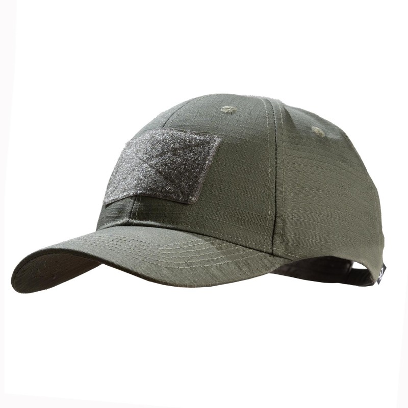 Jockey cap in olive color by the company Survivors with velcro on the front, top and back section for placing national emblem, flag, blood type, etc. It is made of 65%/35% Poly/Cotton in Rip-Stop form. It has small holes to ventilate the head. It is one size and adjustable with the velcro it has on the back.