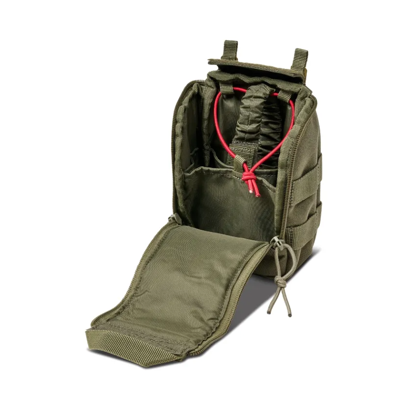 The UCR Ifak Pharmacy Case by 5.11 is designed to provide immediate access to critical medical supplies when needed, excellent for operational use. The front pocket opens downwards, revealing an interior in an open color for quick identification of your equipment. The internal elastic straps ensure stability of your equipment during movement, while the front laser-cut MOLLE allows for additional customization and accessory attachment.