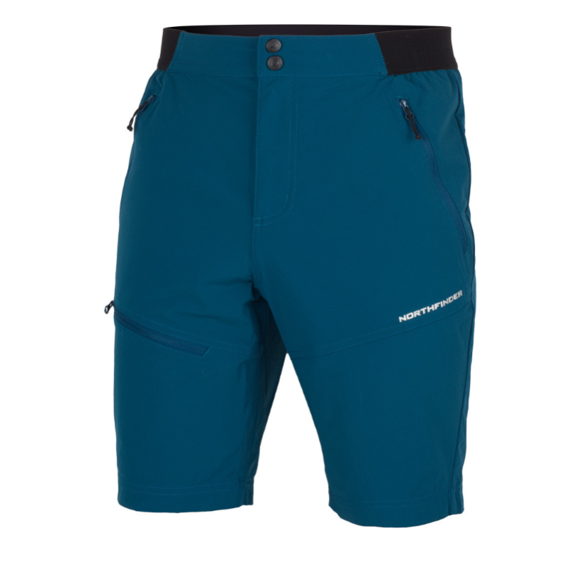 Bermuda shorts Andreas by Northfinder, elastic and suitable for hiking and summer activities. Made of breathable fabric and extremely stretchy, four-way stretch, offering maximum comfort during movement. The shorts feature an elastic waist, two side pockets with zippers, a thigh pocket, a back pocket, and a small pocket for keys.