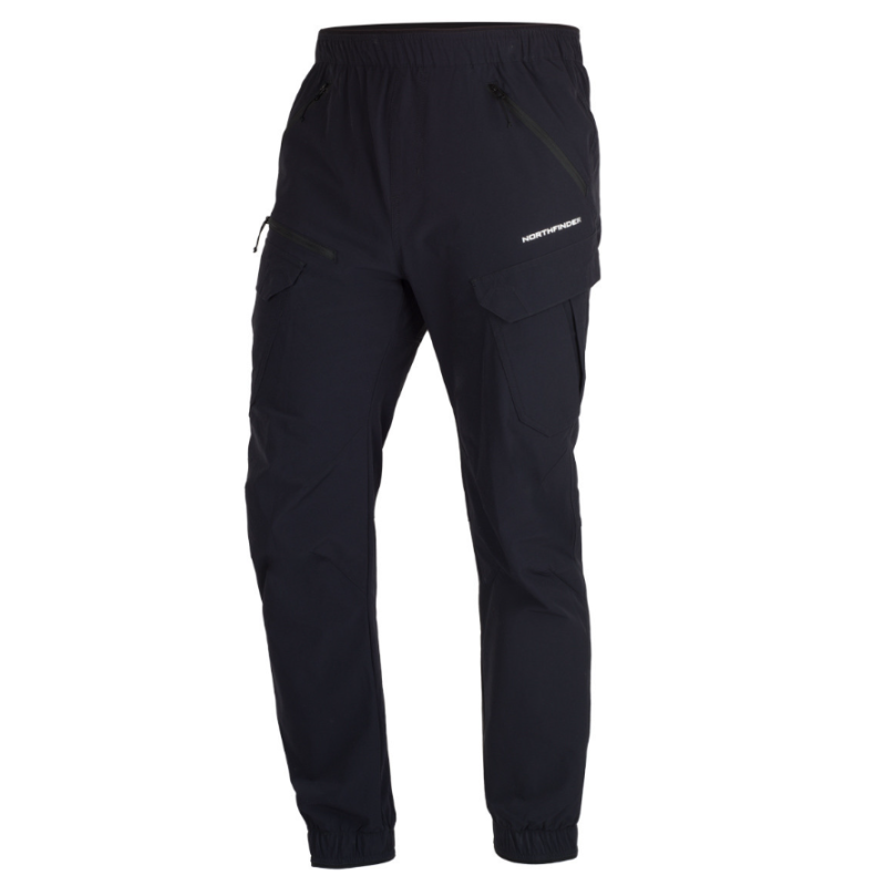 Trekking pants GIAN by Northfinder designed for all activities, made with lightweight and waterproof fabric, with water repellent WR treatment without PFC substances. Designed with two side pockets, two cargo pockets on the thighs, and two back pockets with zippers. The pants narrow slightly towards the bottom and have elastic at the hem. The anatomical design at the knees facilitates movement and offers greater comfort during your activities.