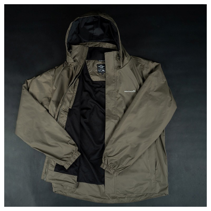 Lightweight, waterproof and breathable jacket model Atlantic 2.0 by Pentagon in black and khaki color. It is made of strong Rip-Stop nylon for high durability. Considered ideal for everyday use and outdoor activities. Easily foldable for transport in a backpack for use even in emergency situations.