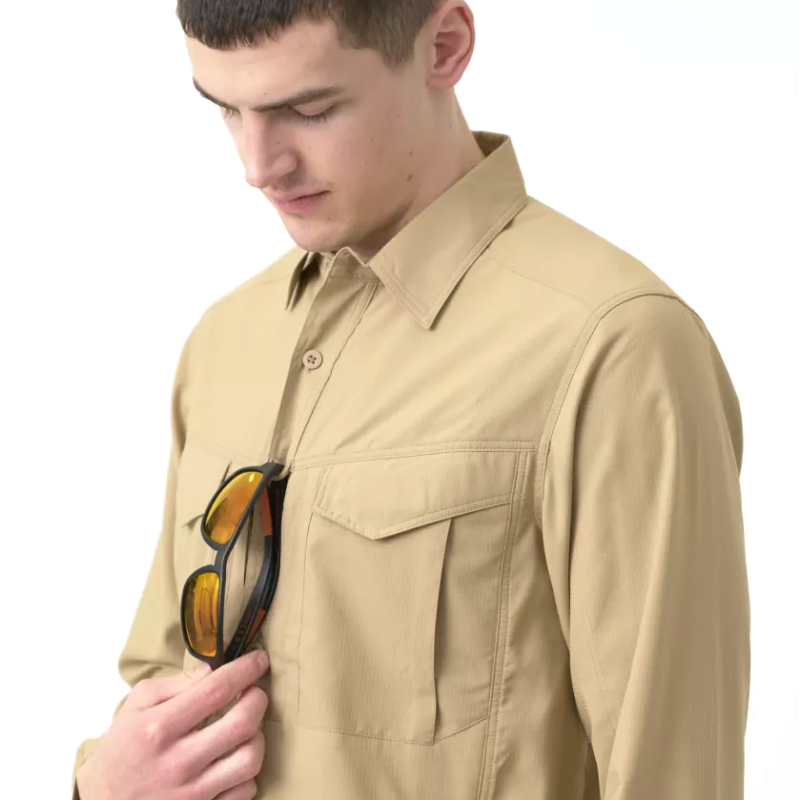The Defender MK2 Tropical shirt from Helikon is ideal for excursions and for the hot summer days. Made of stretchy, polyester fabric, which dries quickly and provides proper ventilation even on the hottest days. In addition, the UPF30 fabric offers the necessary protection from ultraviolet radiation while the mesh panel under the armpits enhances air circulation. Designed with four pockets on the front, at chest level, two main pockets with hook-and-loop closure and two additional vertical pockets with zippers for secure storage of small items.