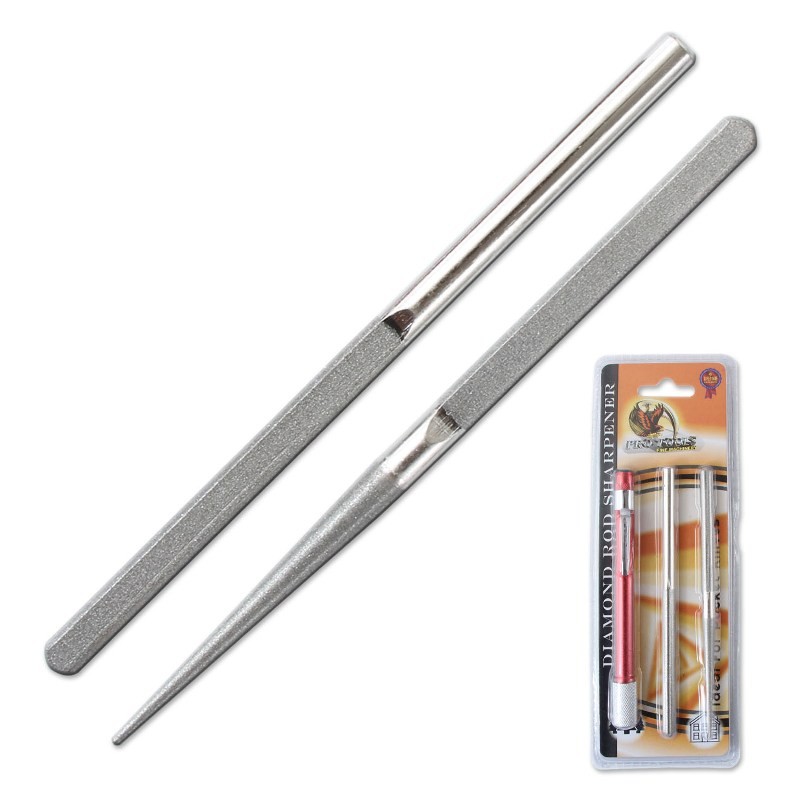 The Alpin Dual Sharpening Rod is versatile and suitable for kitchen use, outdoor activities, or professional settings. Featuring a triple sharpening design, its diamond-coated rod sharpens all types of knives, including serrated ones. The tapered end is specifically crafted for serrations and tight spaces.
