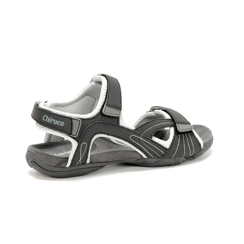 Chiruca women's sandals, model Cullera, ideal for daily use in the summer months on your walk, on vacation or at the beach. They can also be used for hiking. Made of synthetic fabric, with three straps that are very easy to adjust to your size and secure with velcro. They have a rubber outsole that gives you excellent traction and an EVA midsole.