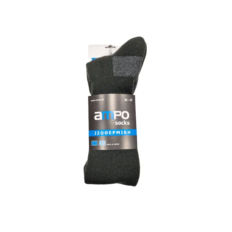 Isothermal socks from the Ampo company, in two colors khaki and black, which offer you comfort and an excellent fit. They are the ideal solution for service, for military service but also for daily use in periods when the temperature is low so that our feet do not get cold. Made of 60% Wool, 30% Semi-Wool, 5% Polyamide and 5% Rubber.