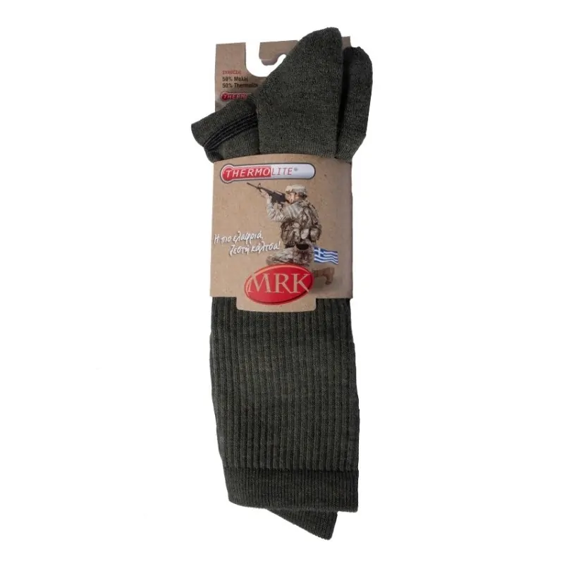 Ισοθερμικές κάλτσες της εταιρείας MRK τεχνολογίας ThermoLite ιδανικές για χαμηλές θερμοκρασίες ώστε να προστατευτείτε από το κρύο και την υγρασία. Διαθέσιμη σε δύο χρώματα χακί και μαύρο για να επιλέξετε αυτή που σας εξυπηρετεί.