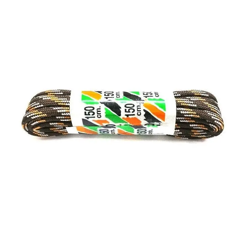 Κορδόνια με μήκος 1,5m, σε κυλινδρικό σχήμα, αντοχής της εταιρείας Coibra σε καφέ σκούρο με πορτοκαλί και γκρι χρωματισμό ώστε να ταιριάζει άριστα με τα μποτάκια για να ξεφύγουμε από τους κλασσικούς χρωματισμούς. Η συσκευασία περιέχει ζευγάρι.