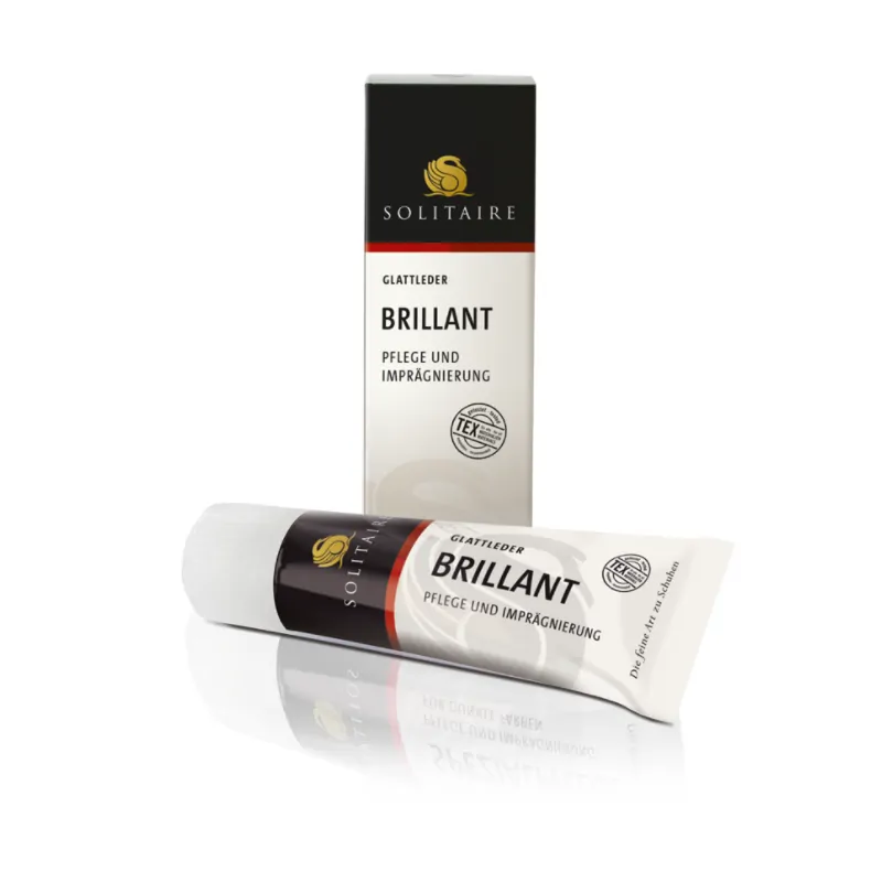 Αλοιφή περιποίησης μαύρου δέρματος Brilliant της εταιρείας Solitaire 75ml με σφουγγάρι εφαρμογής. Προσφέρει ποιοτική φροντίδα στο δέρμα και βαθύ εμποτισμό. Περιέχει κερί μέλισσας και φρούτων και είναι κατάλληλο για απαλό και μαλακό δέρμα.