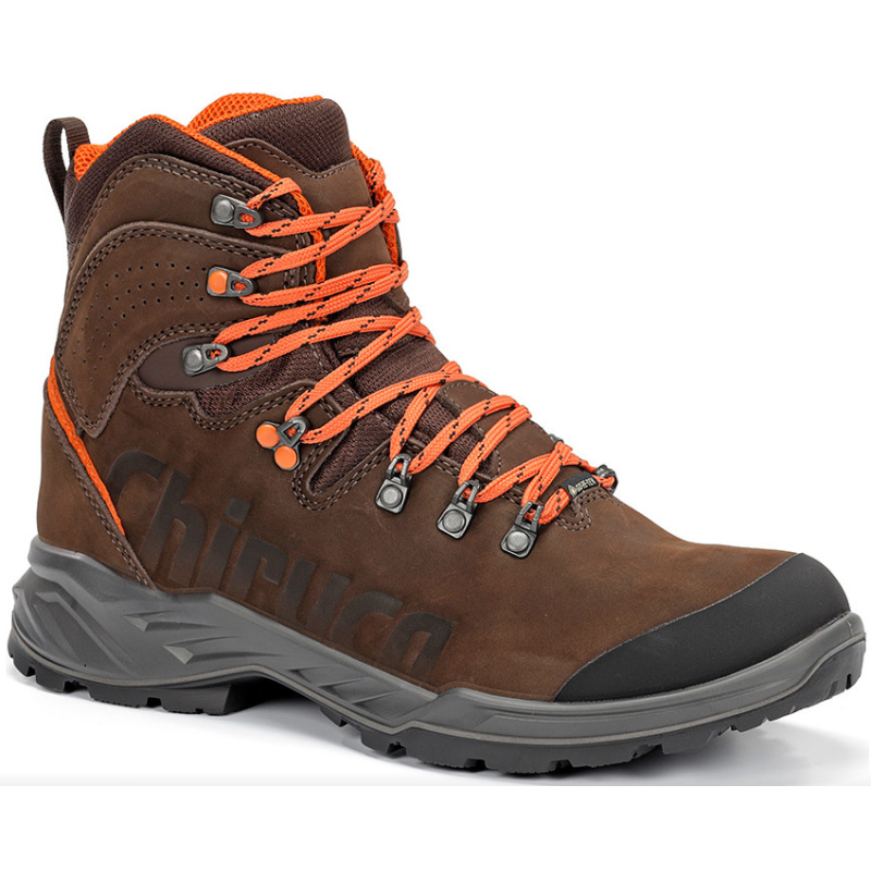 Sequoia Force GTX 12 Boots by Chiruca, suitable for hiking and daily use. Made of nubuck leather with water-repellent properties and GORE-TEX lining for complete water protection and maximum breathability. The Cordura technology provides additional strength and durability. The dual-density Hawk outsole ensures durability, while the rubber reinforcement in the toe area offers user protection.