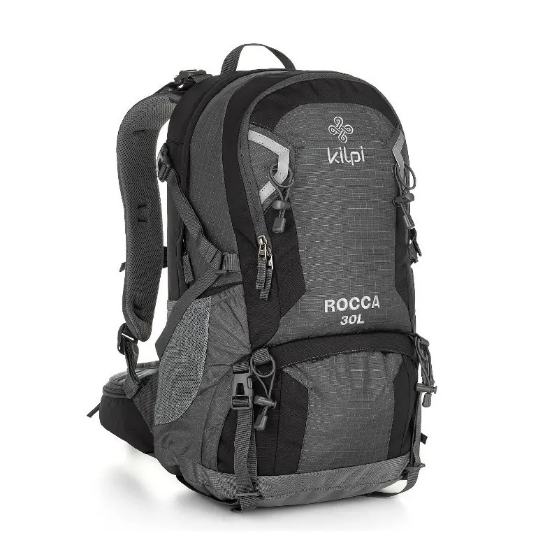 Backpack by kilpi, model Rocca-U, capacity 30 liters in dark gray color with black details. ideal for outdoor activities such as hiking or camping but also for daily use to carry your personal belongings comfortably and safely. It has a breathable back with anatomical pads for easier carrying as well as adjustable foam straps for more comfort.