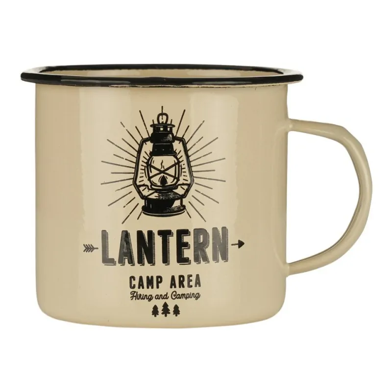 High quality enamel mug with a volume of 500ml. The cream color in combination with the outdoor print gives an adventurous look and fits right in with the outdoor scene. Great for camping, in camper vans and many other outdoor activities.