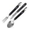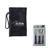 The Alpin Camping Cutlery Set is perfect for outdoor adventures and comes with a convenient carrying case. Made from durable stainless steel, the set includes a knife, fork, and spoon, each equipped with foldable can openers for added functionality.