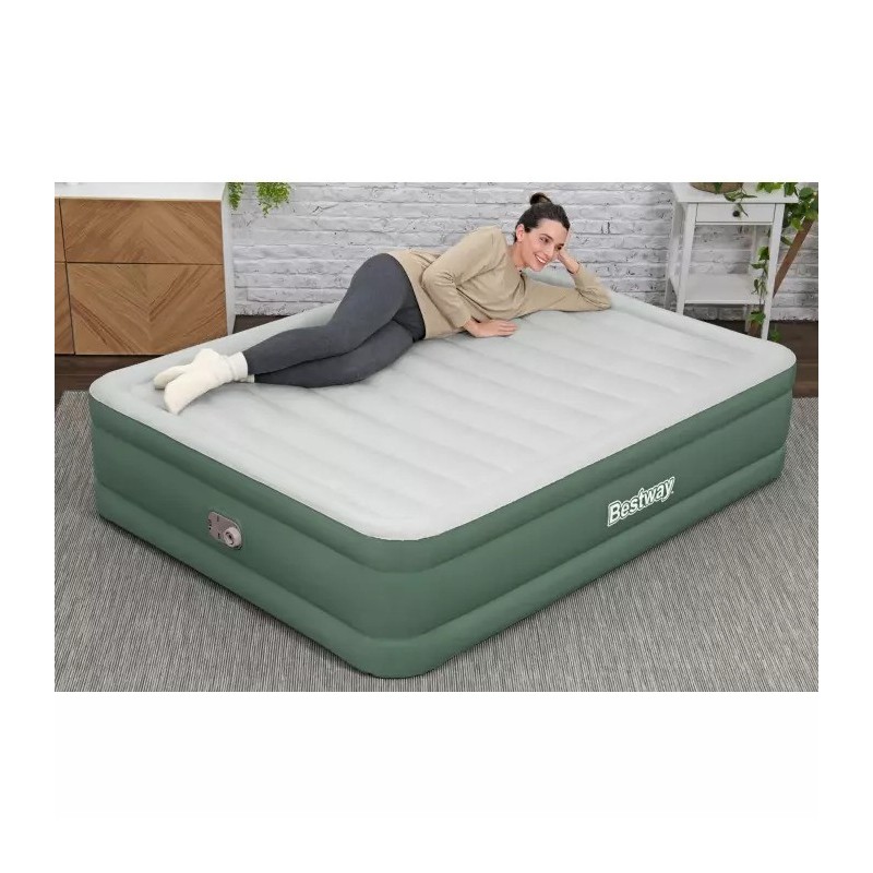 Bestway's Toughlite TPU Double Airbed designed for home use with an integrated electric pump for easy inflation. Made with toughlite TPU without PVC making it more resistant to punctures, elastic, and lightweight. The surface is velvety to provide comfort, and the perimeter frame provides safety for the user. Its compact size and integrated air pump (inflates in just 3-4 minutes) make it fast and convenient for use whenever needed. Includes a carry bag for easy transportation and storage. Also provided is an extra strong repair patch for any unforeseen punctures.