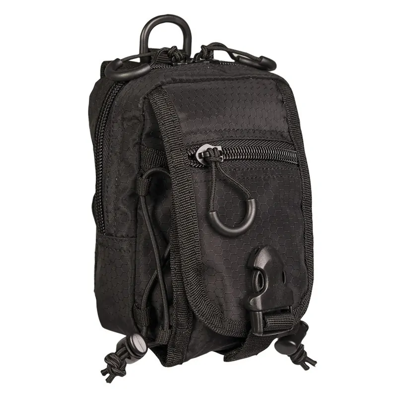 Belt pouch with hexagonal pattern and made of water-resistant material