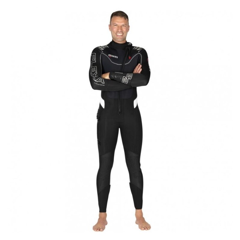 The Mares Flexa 3/2mm Diving Suit is ideal for dives in warm waters, whether for training dives or for holidays. Made exclusively from Ultrastretch, which offers unique freedom of movement, exceptional fit, and top comfort. Designed with a soft neck closure to reduce irritation, Glideskin lining on the wrists and ankles for reduced water entry, and anti-slip surface on the wrists. Additionally, it has ergonomic reinforcement on the back and handle on the shoulders for added comfort, as well as Supratex knee protectors for durability.