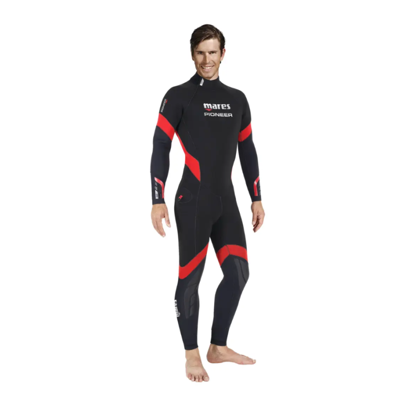 The Pioneer 5mm men's wetsuit is a temperate water wetsuit made of Neoprene and Ultrastretch Neoprene that provides convenience, ease of donning and comfort. The design is modern with red coloured neoprene panels for the men's Pioneer 5mm.