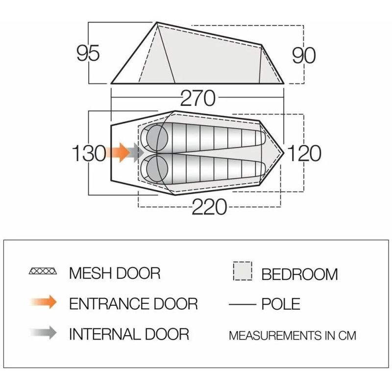 The 2-person Vango tent model Soul 200 can be set up in less than seven minutes thanks to the simple Tube design it features and the structure of the two poles. It is made from Protex® 70 Denier Polyester Flysheet with waterproofing of 3000mm and has an inner breathable fabric that releases moisture.